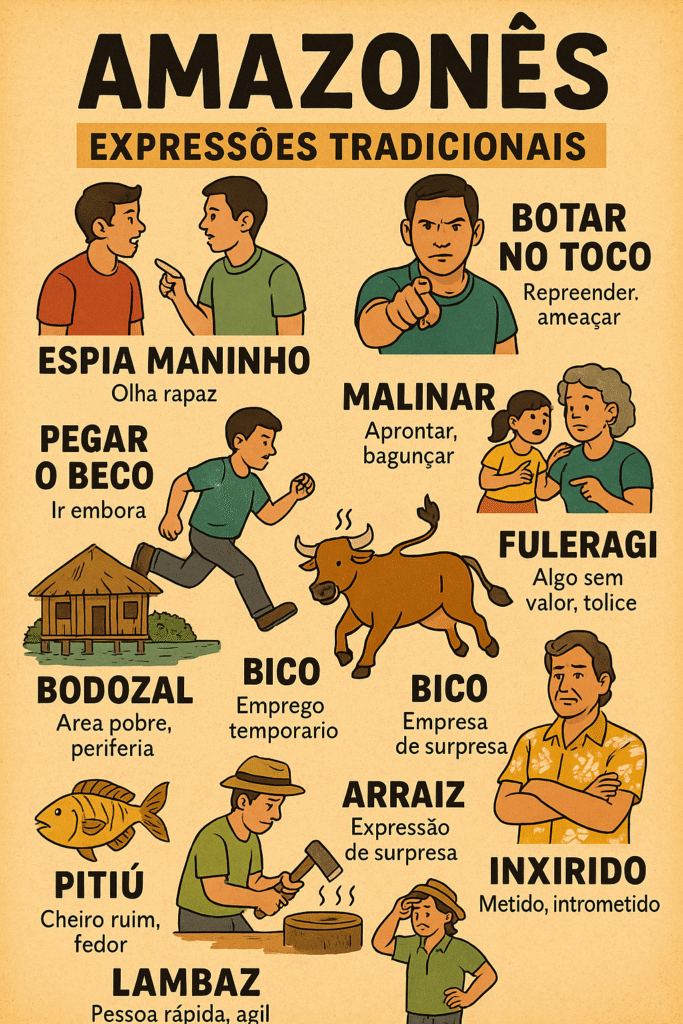 Essas expressões cheias de ritmo e carisma fazem parte do Amazonês, o jeito único e encantador de falar do povo do Amazonas.
